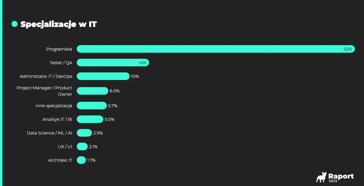 Jeżeli spojrzymy na profil biorących udział w badaniu, zauważymy, że znacząco wzrasta odsetek kobiet w społeczności IT. Jak podkreśla BulldogJob „oznacza to, że kobiety coraz śmielej wkraczają do branży IT”. I to nie tylko w obszarze UI/UX czy zarządzaniu projektami, ale coraz liczniejsza jest społeczność developerek IT.