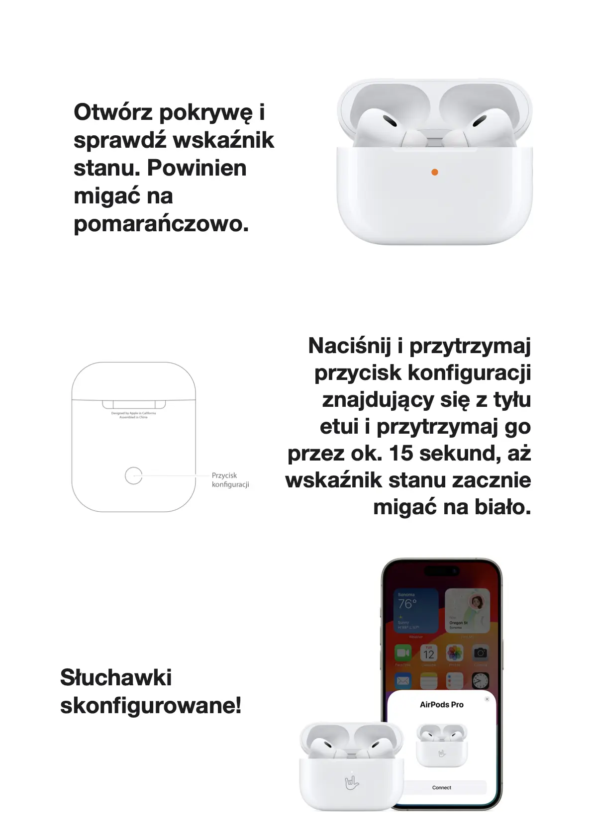 Po dostarczeniu brakującego elementu Twoich AirPodsów, przychodzi pora na ich konfiguracje. Cały proces jest bardzo prosty i intuicyjny, nie wymaga ingerencji Autoryzowanego Serwisu. Poniżej przedstawiamy instrukcję, z której dowiesz się jak, krok po kroku, skonfigurować sprzęt. W przypadku pytań, jak zwykle, odsyłamy do kontaktu z naszymi ekspertami.
