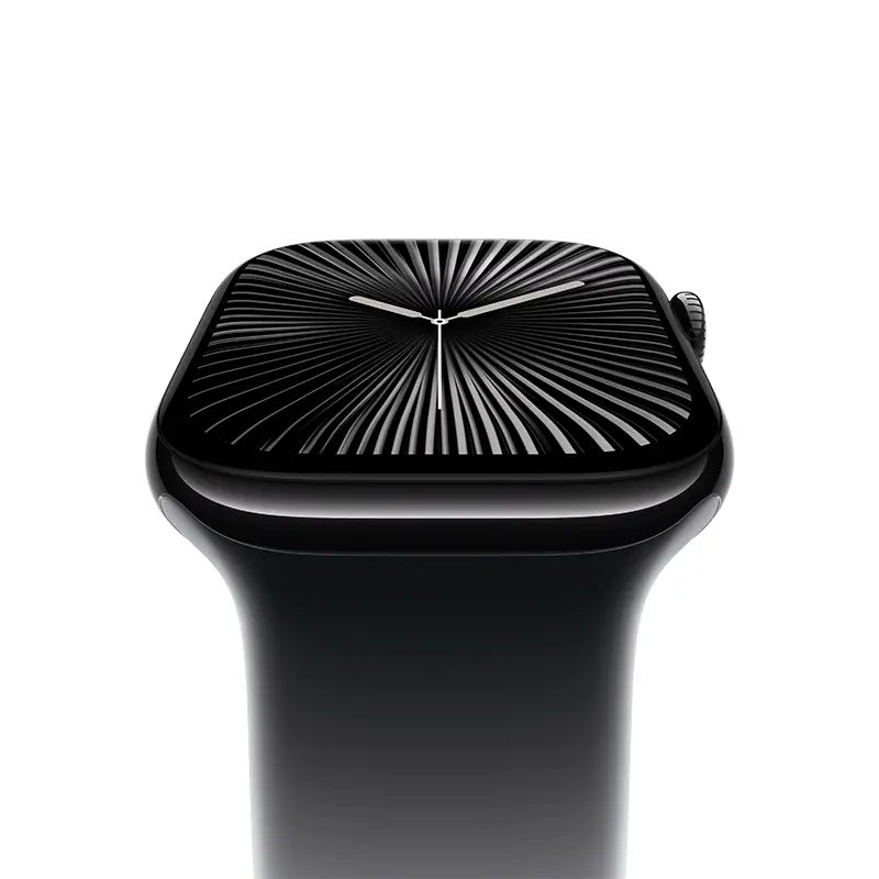 Na te nowości w Apple Watch czekaliśmy od dawna. Kolejny duży upgrade designu i konstrukcji smartwatcha, który stał się jeszcze bardziej perfekcyjny. Apple przeprojektowało niemal każdą jego część – od układu SiP przez pokrętło Digital Crown po głośnik, szkło przednie i antenę. Apple Watch Series 10 ma kopertę grubości 9,7 mm, a na ekranie jest 30% więcej miejsca na treści, w porównaniu z ekranami w Watch Series 4, 5, 6 i SE. Ulepszono również sam wyświetlacz, który został wykonany w technologii OLED o szerokim kącie widzenia. Jest jaśniejszy, więc łatwiej dostrzec informacje pod każdym kątem. Kiedy nie patrzymy na zegarek, niegasnący wyświetlacz Retina ogranicza swoją jasność do minimalnej wartości, czyli 1 nit. Częstotliwość odświeżania ekranu przy takiej jasności wynosi w nowym modelu jeden raz na sekundę (w poprzedniej generacji raz na minutę).